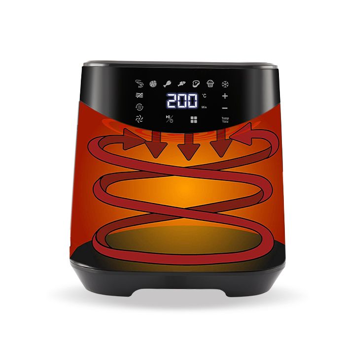 - 6 in 1 functions: Fry - Grill- Defrost - Reheat - Roast - Bake